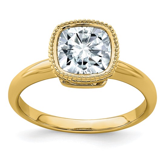 3.3ct Cushion Beaded Bezel True Light Moissanite Ring. Online deal only.