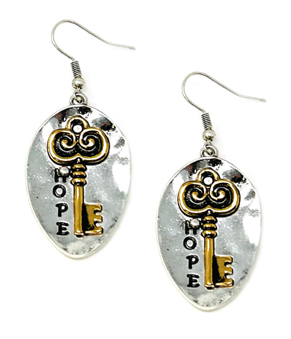 Metal key earrings – hope