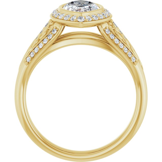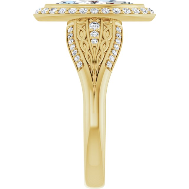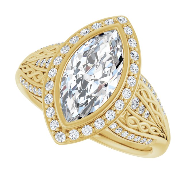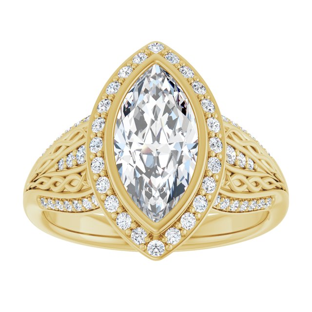 14k gold, Marquise Moissanite (12x6mm marquise, 1.75ct, D color), bezel set center, 58 genuine diamonds